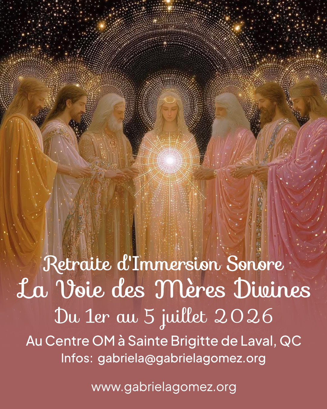 Voyages Initiatiques 03Mai 3 au 10 mai 2026 – Voyage spirituel L’ITALIE SAINTE mai 3, 2026mai 10, 2026 Voyages Initiatiques 01Juil La Voie des Mères Divines du 1er au 5 juillet à Sainte Brigitte de Laval, Québec juillet 1, 2026juillet 5, 2026